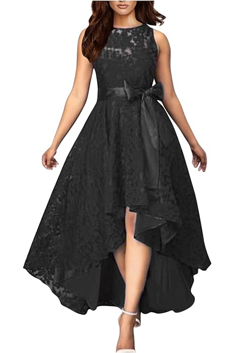 Amazon Com Adhowbew Wedding Guest Dresses For Women Lace Sleeveless High Low Plus Size Formal Dress Summer Wedding Guest Fashion 2023 Evening Party Outfits Vestidos Elegantes De Mujer Para Fiesta Black Medium Clothing